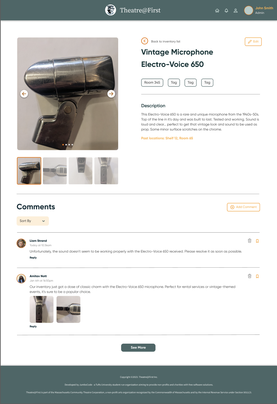 A full-stack inventory management system for a local non-profit theatre, developed alongside a 10-person agile development team. Work was organized under JumboCode’s pro bono software development service.